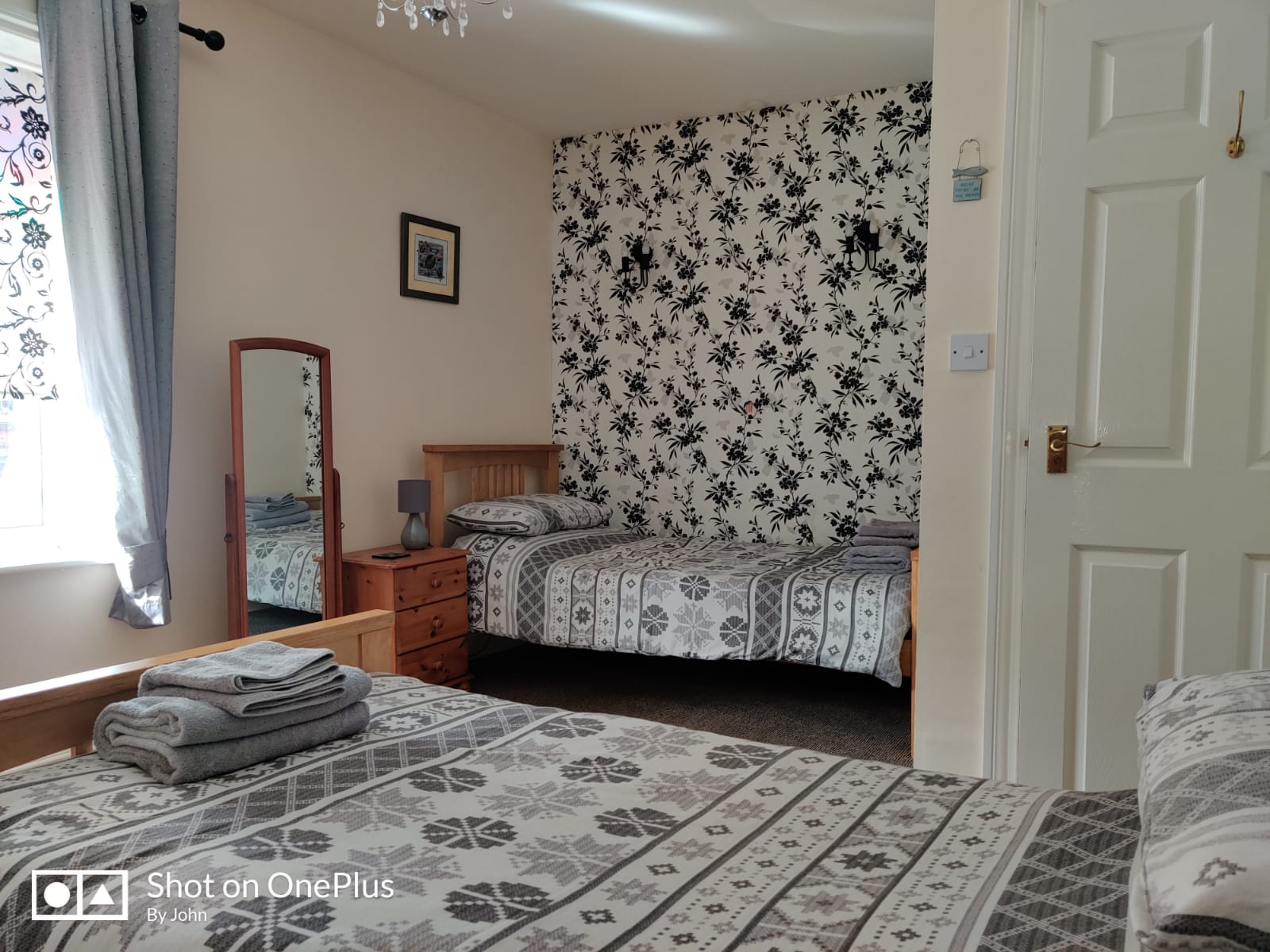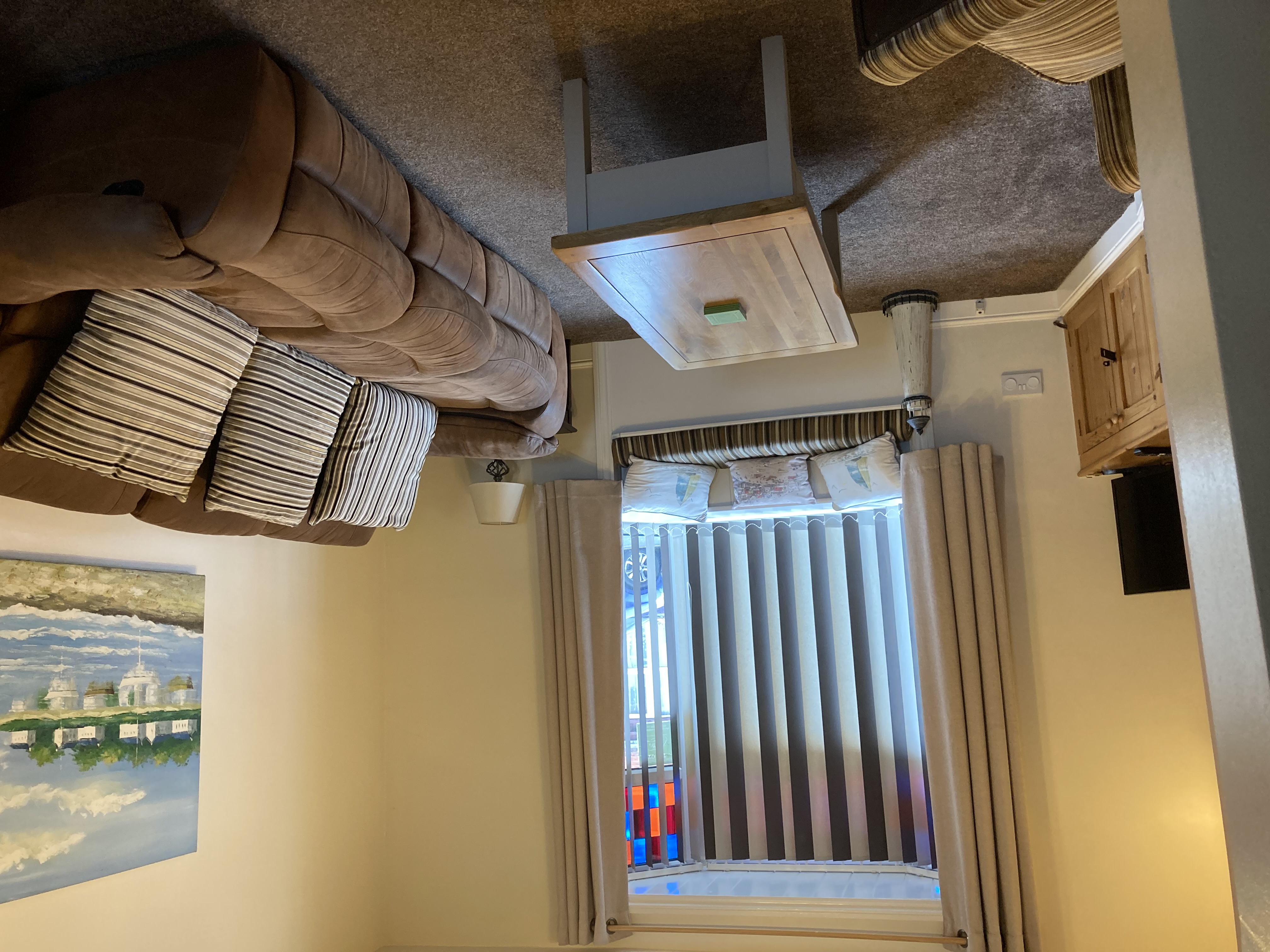 Both bedrooms have wall mounted TV with Freeview, each being located on the first floor, beside the family bathroom with shower over bath.